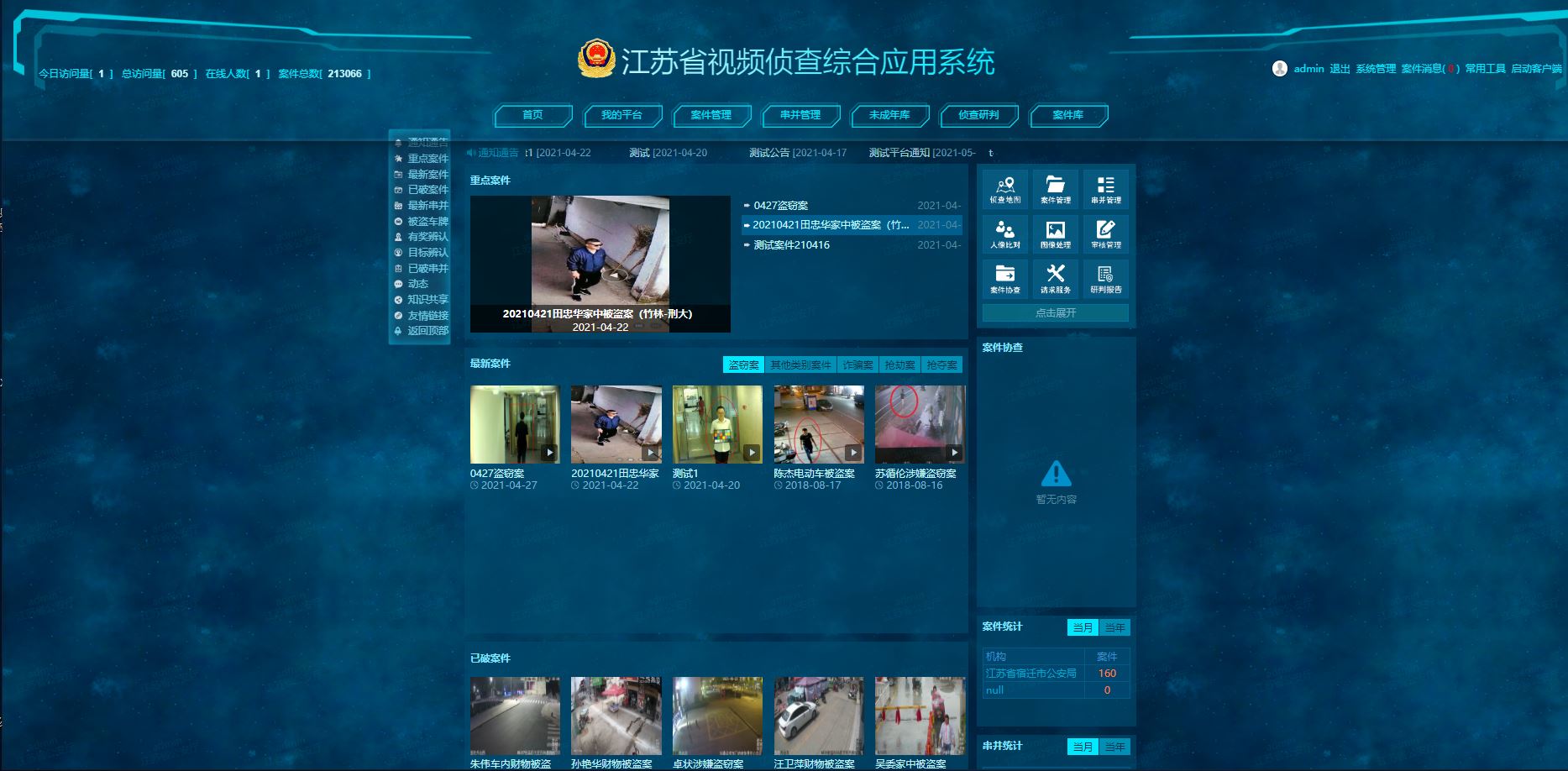 3) 涉案视频综合管理: