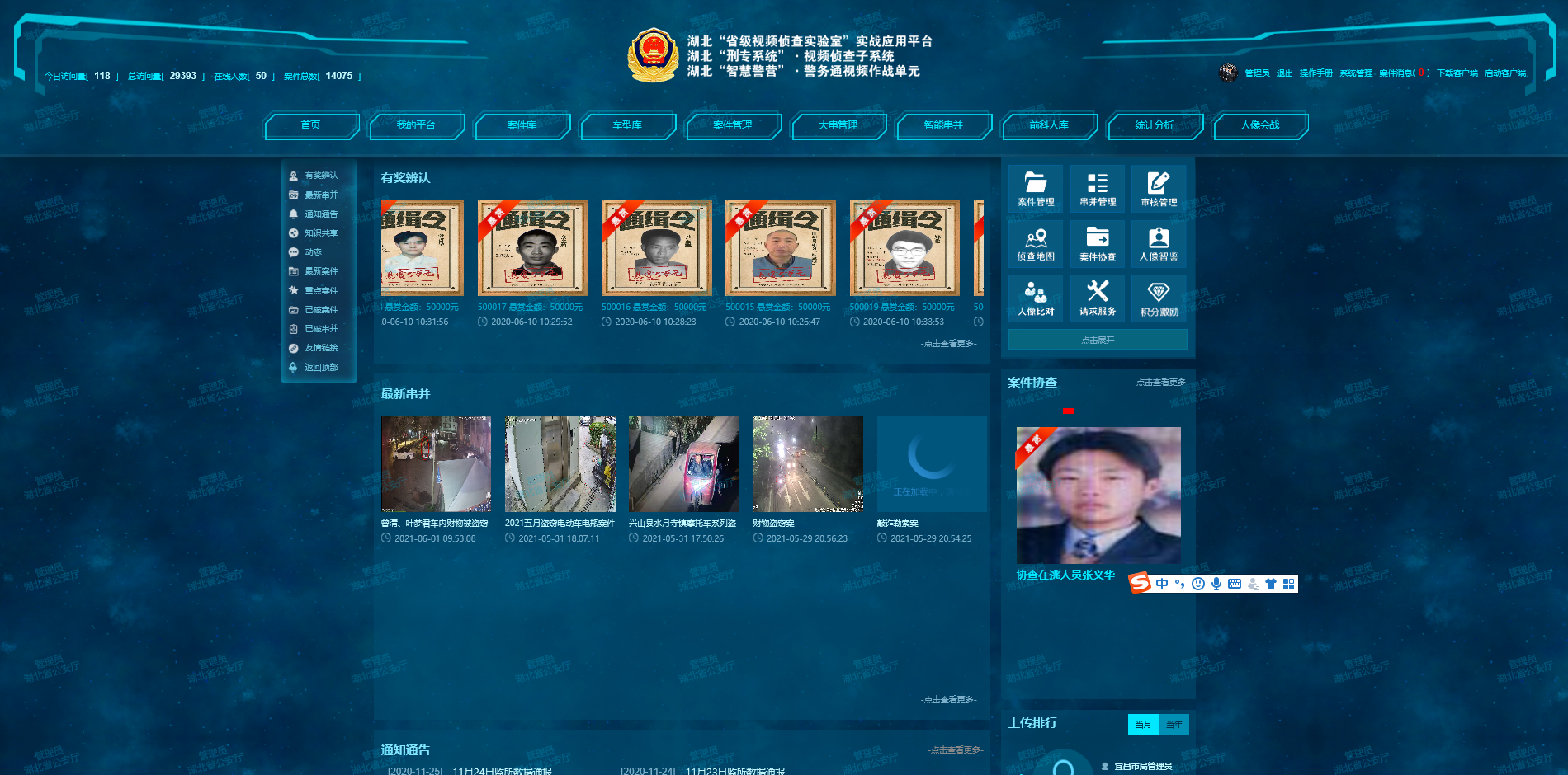 支持业务指导、统计分析、协查合作、信息发布等。