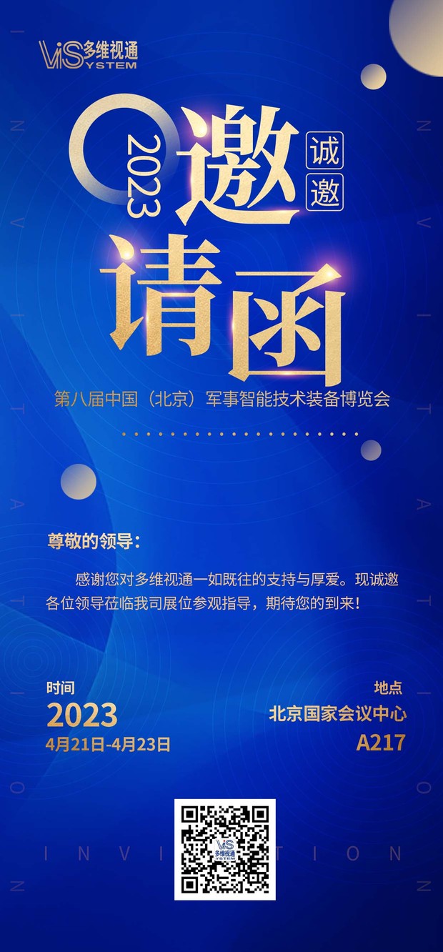本届军博会辐射范围包括政府部门、军委机关、各大战区、各军兵种、军事院校、武警、公安、交通、人防、航天、航空、兵器、船舶、电科集团等从事国防军工技术与产业领域的30000多名代表等。北京多维视通技术有限公司受邀参加本届军博会。