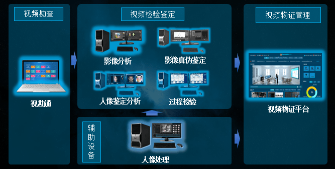 多维视通构建的二代视证体系包括实现“智慧检验”的警视通・慧眼系统、实现“影像清晰”的图像处理系统、实现“真伪辨别”的影像真伪鉴定系统、实现“人像同一”的人像鉴定分析系统、实现“内容辨析”的视频过程检验系统、实现“人像修复”的人像处理系统等。